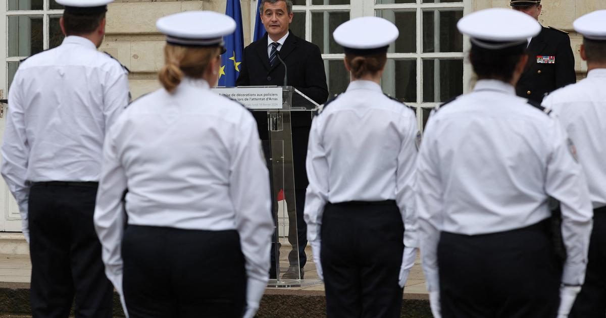 «Vous avez neutralisé le terroriste, vous avez empêché que l'assassinat ne se transforme en tuerie, vous avez protégé et secouru au péril de votre vie des enseignants, des agents, des enfants», a déclaré le ministre, s'adressant aux policiers, «héros d'Arras», en uniforme blanc, en présence de leurs familles. Le ministre est revenu sur ce matin du 13 octobre : à 11h, «le 17 reçoit un appel apeuré évoquant un terroriste qui s'est introduit au lycée Gambetta» et «qui évoque des victimes, des couteaux, un meurtrier toujours dans la cour».