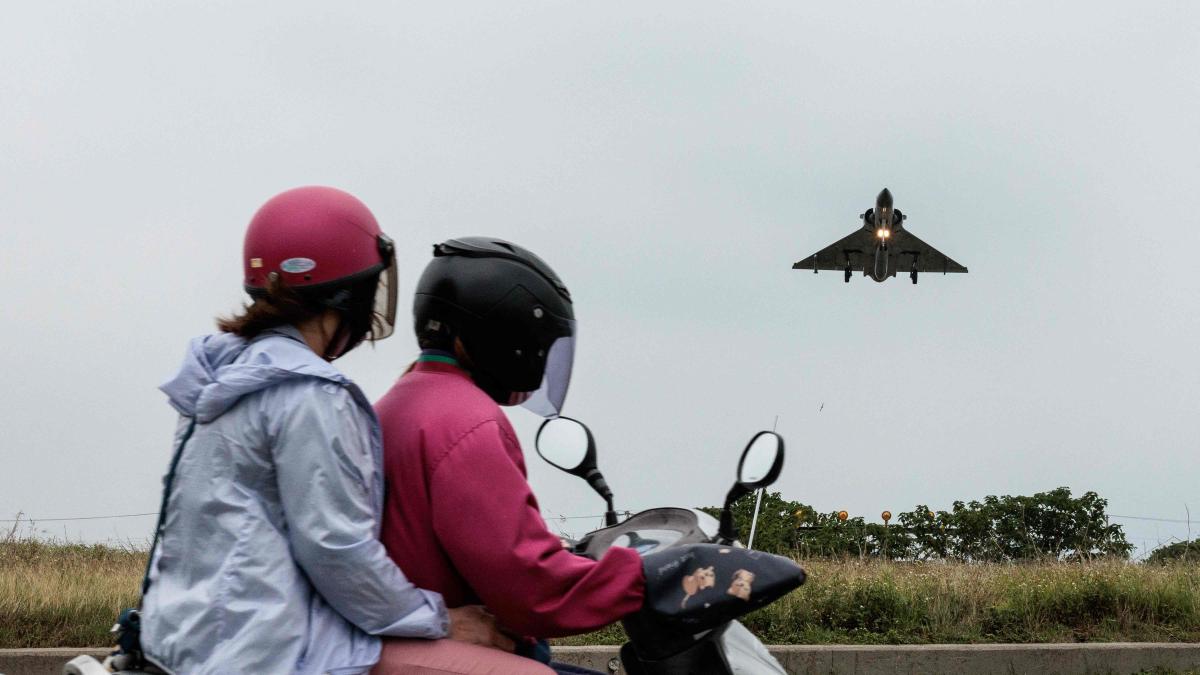 Un caccia taiwanese decolla dalla base militare di Hsinchu, nel nord dell'isola, per una missione di ricognizione dopo le manovre cinesi (Afp)