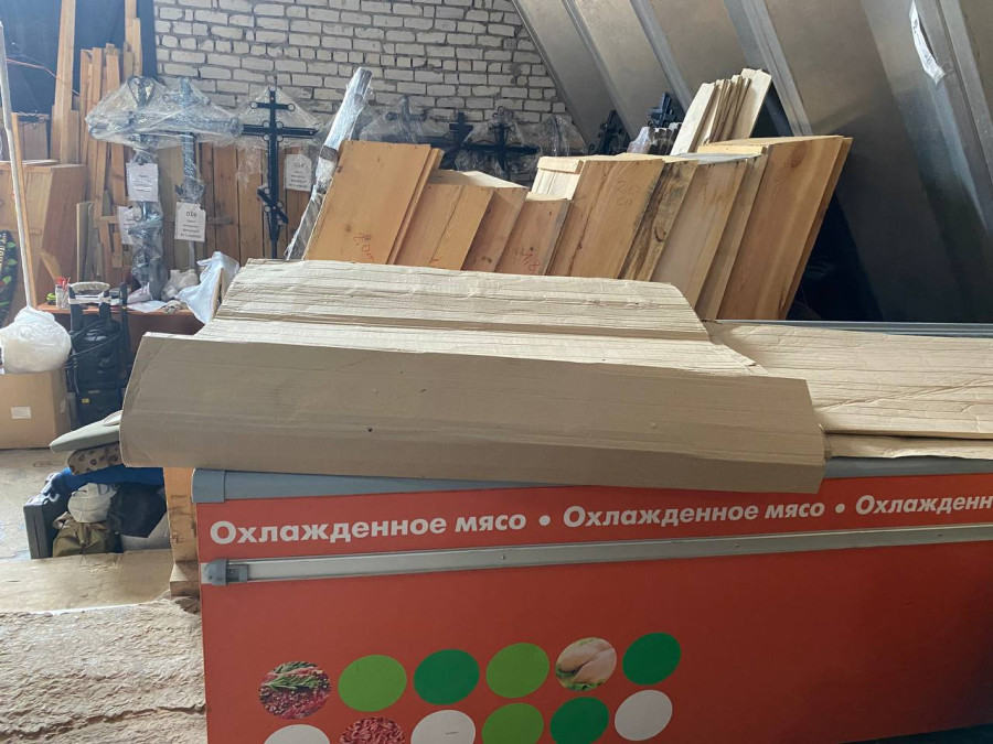 На месте она обнаружила помещение, где были гробы и похоронная атрибутика. А также тела пожилых людей в обычных магазинных холодильниках с надписью «Охлаждённое мясо» и «Мороженое».