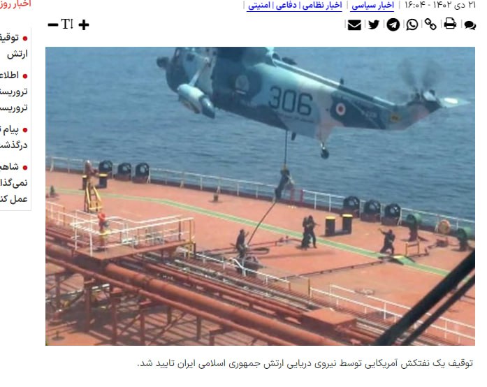 Конфискованный Америкой у Ирана нефтеналивной танкер теперь конфискован Ираном у США. Это тот самый танкер, который вместе с 1 миллионом баррелей иранской нефти конфисковали власти США в сентябре 2023 года, обвинив в "нарушении режима санкций". Судно переименовали и продолжили возить на нём нефть, но уже в американские порты.
