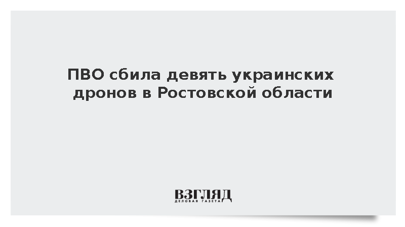 В Ростовской области средства ПВО сбили девять украинских беспилотников в различных районах, пострадавших и разрушений нет, сообщил врио губернатора Юрий Слюсарь.