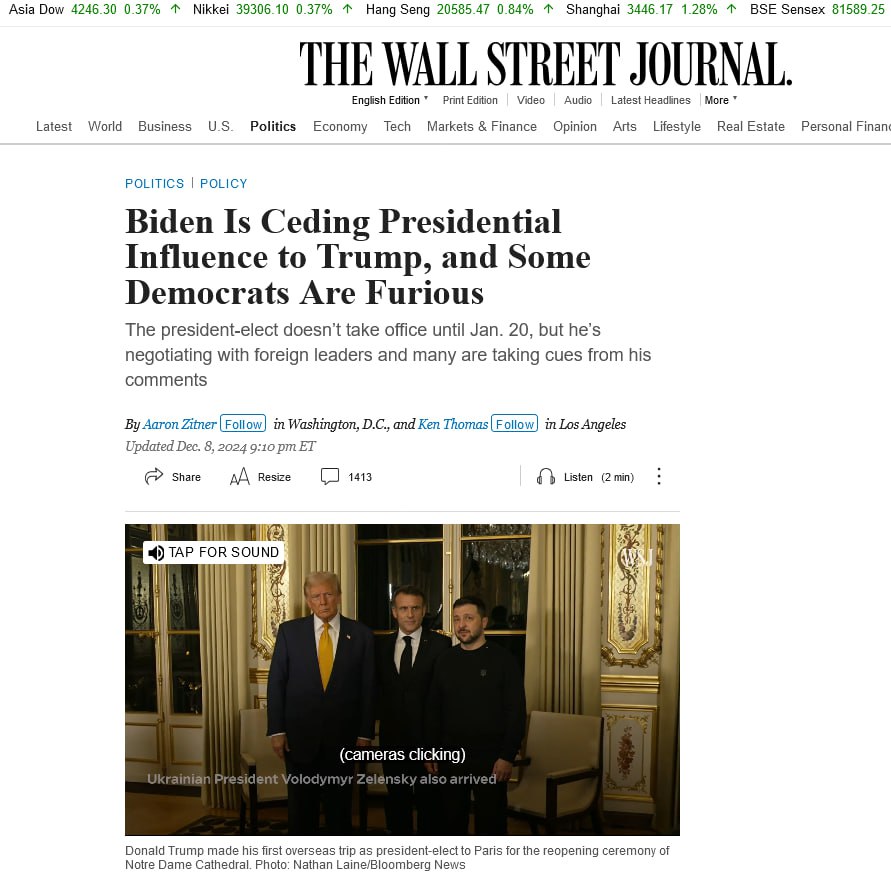 ✔️Wall Stree Journal: Демократы раздражены, что Байден уже уступил президентское влияние Трампу
