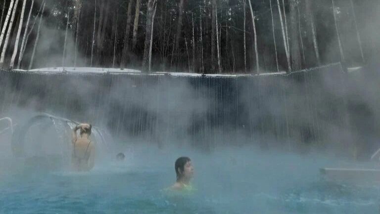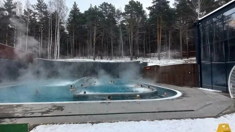 • Огромный термальный бассейн под открытым небом (заявляют около 500 м² водной поверхности, температура воды зимой +35…+39 градусов) плюс внутренние бассейны с гидромассажами, соленой водой и пул-баром.