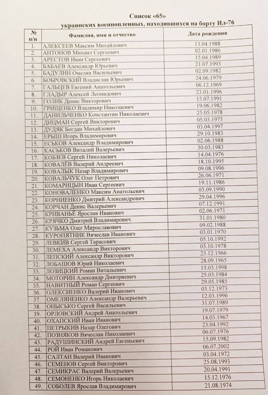 ⚡️24 января действительно планировали обменять 65 украинских военных, имена которых российская сторона опубликовала после падения Ил-76, — Координационный штаб по вопросам обращения с военнопленными