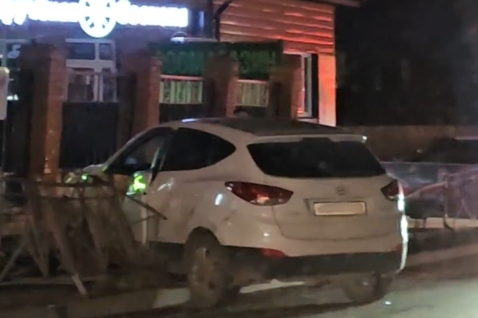 Легковой автомобиль проломил забор, идущий вдоль проезжей части, после чего вылетел на тротуар. Авария произошла возле местного бара.