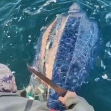 Вчера в бухте Разбойник в сетях запуталась черепаха. Рыбаки распутали её и отпустили. Видео с моментом освобождения опубликовал канал новостей Уссурийска.