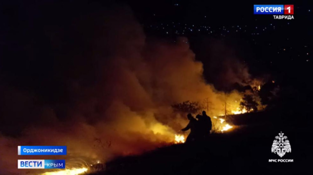 По уточнённой информации МЧС Крыма, площадь возгорания — 35 гектаров. Пламя вспыхнуло накануне вечером. Всю ночь пожарные тушили огонь, сейчас работы продолжаются.