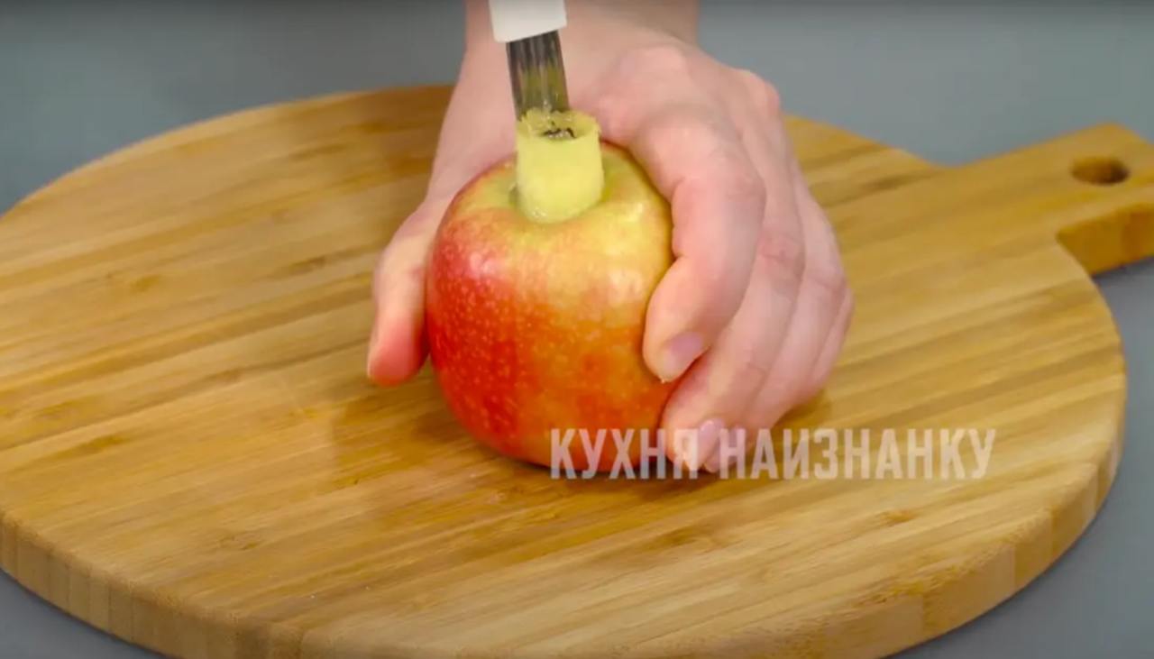 Из яблока удаляю сердцевину. Я использую специальный нож для удаления сердцевины. Но, конечно, можно просто разрезать яблоки пополам и вычистить серединку обычным ножом.