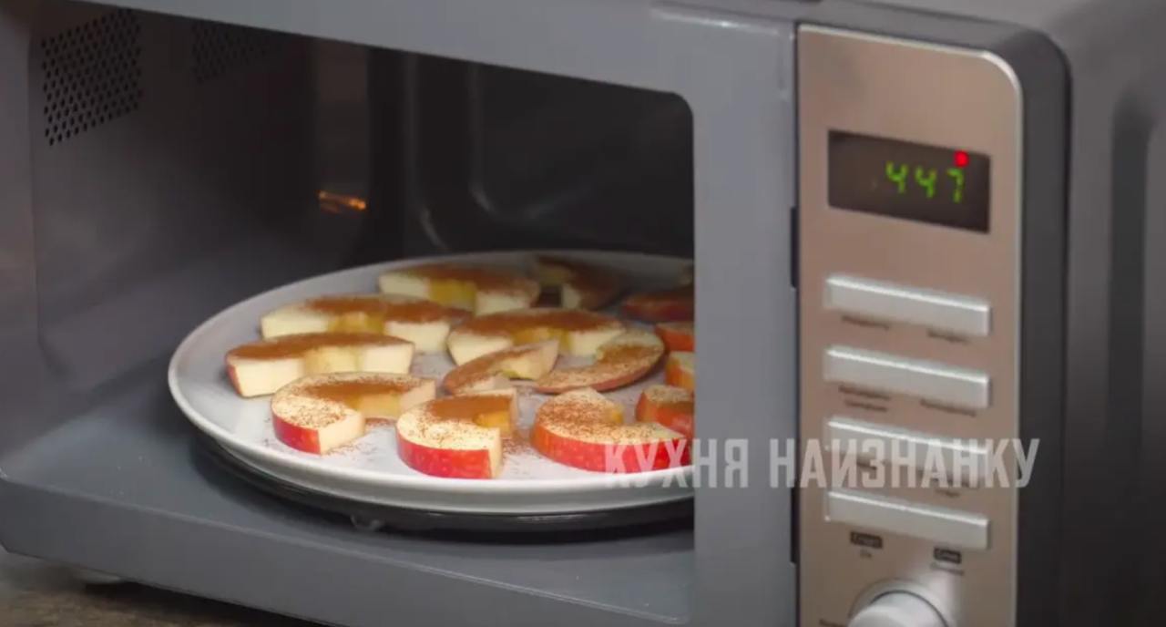 Ставлю тарелку с яблоками в микроволновку примерно на 2 минуты. Мощность моей микроволновки 700 Вт