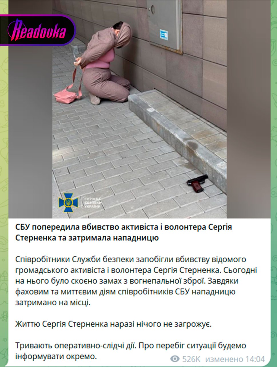Женщина попыталась застрелить украинского пропагандиста Стерненко. Он чудом выжил в инсценировке