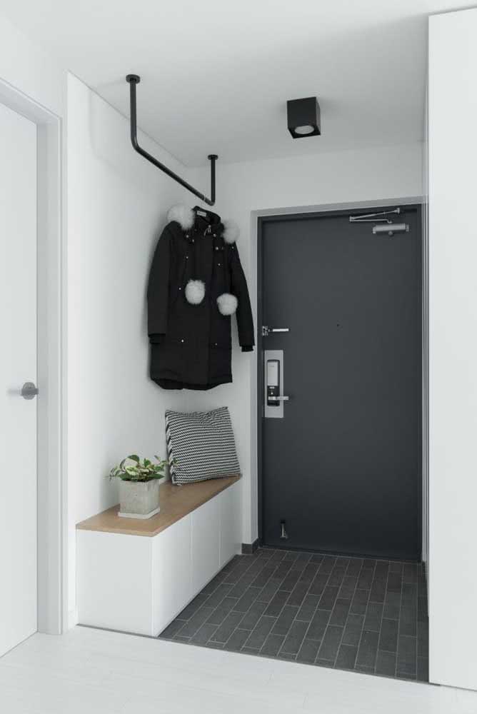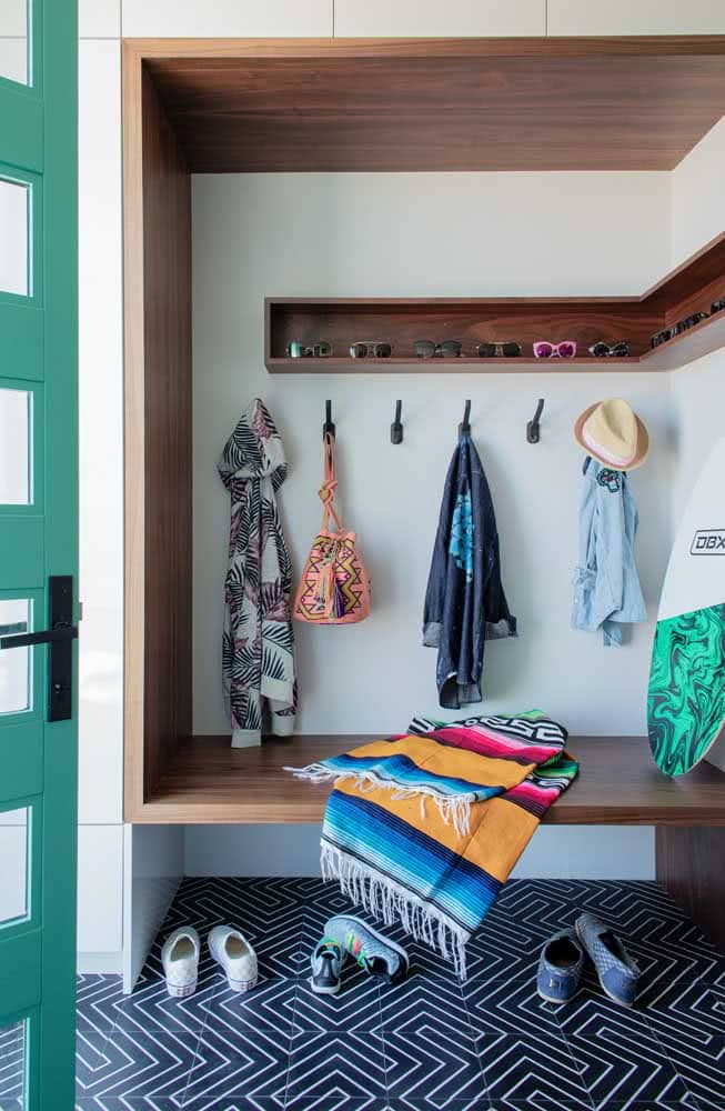 Скамейка, расположенная у входа, создает необыкновенно уютную атмосферу и служит не только функциональным элементом для того, чтобы удобно надеть или снять обувь, но и становится невероятно полезным пространством для хранения различных предметов – от зонта до перчаток.