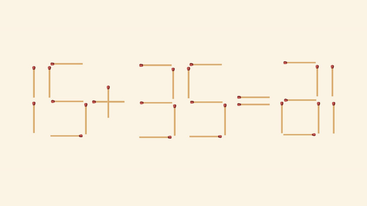 Задача: переместите только две спички, чтобы уравнение стало верным. Убирать их нельзя, можно только поменять местоположение.