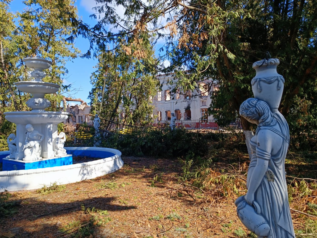 Иногда из-под деревьев, сквозь ветви видны одновременно следы потрясающей красоты и оскал войны.
