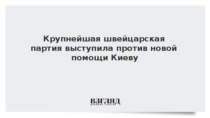Крупнейшая партия в парламенте Швейцарии выразила несогласие с идеей предоставления новой помощи Украине, об этом говорится в заявлении партии.