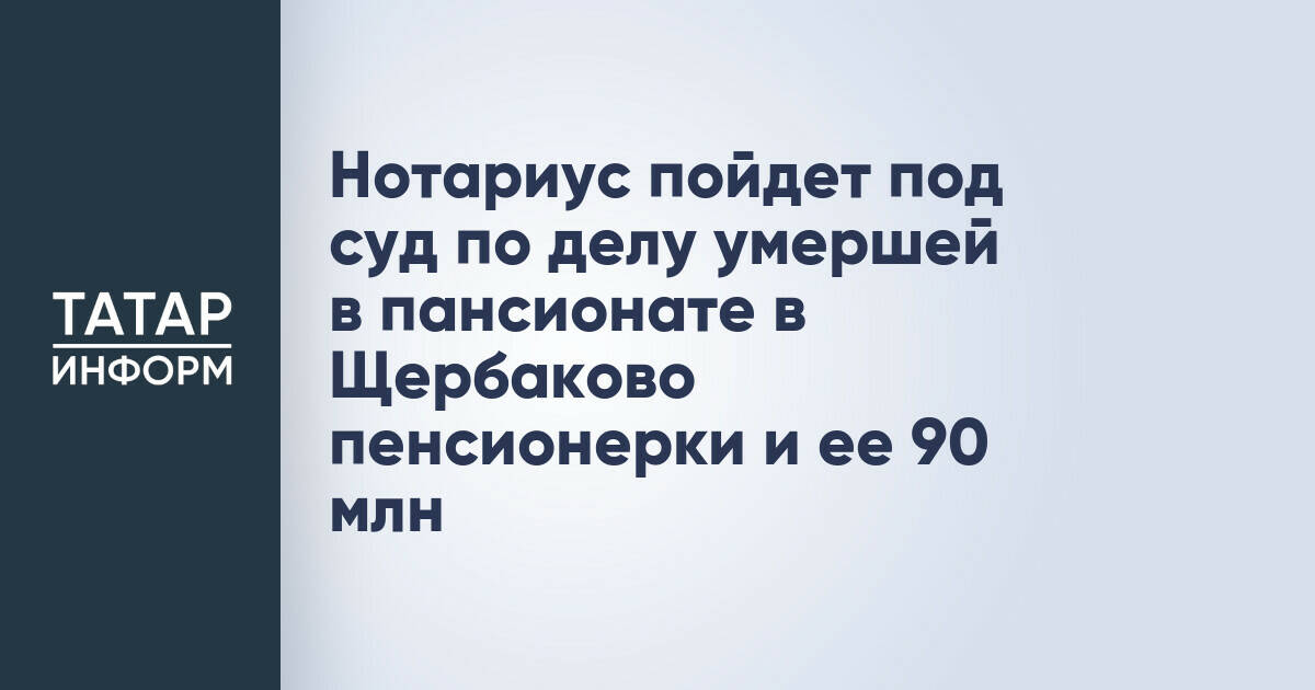 Женщина, исполнявшая обязанности нотариуса, предстанет перед судом по делу умершей в пансионате в Щербаково пенсионерки. Об этом сообщает старший помощник руководителя СУ СКР по РТ Андрей Шептицкий.