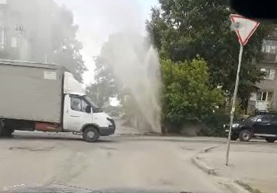 Фонтан воды забил на перекрестке в Октябрьском районе Новосибирска — видео