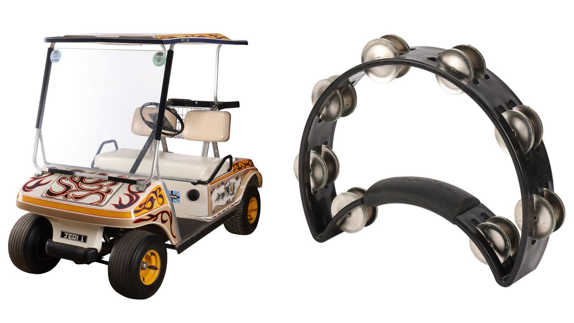 Noel Gallagher's psychedelic golf buggy and Liam Gallagher's tambourine are among a host of Oasis memorabilia going on auction.
