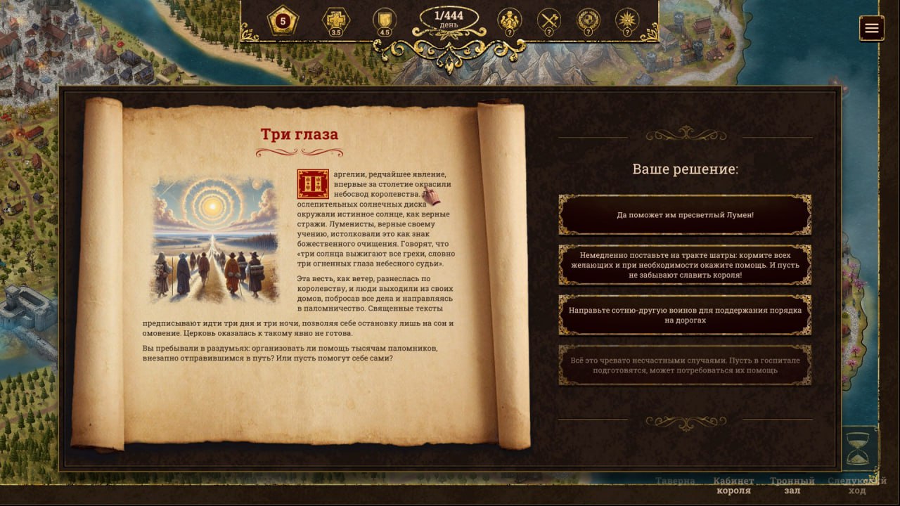 ⚔️ Лавируй между фракциями – церковь, армия, знать и простой народ – все имеют свои интересы.