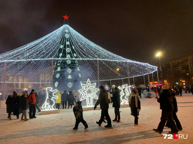 Ярко светила главная елка Тюмени. Возле нее горожане фотографировались и просто наслаждались праздником