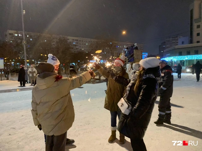 Запускали фейерверки и водили хороводы. Как тюменцы отмечали Новый год в центре города — фото
