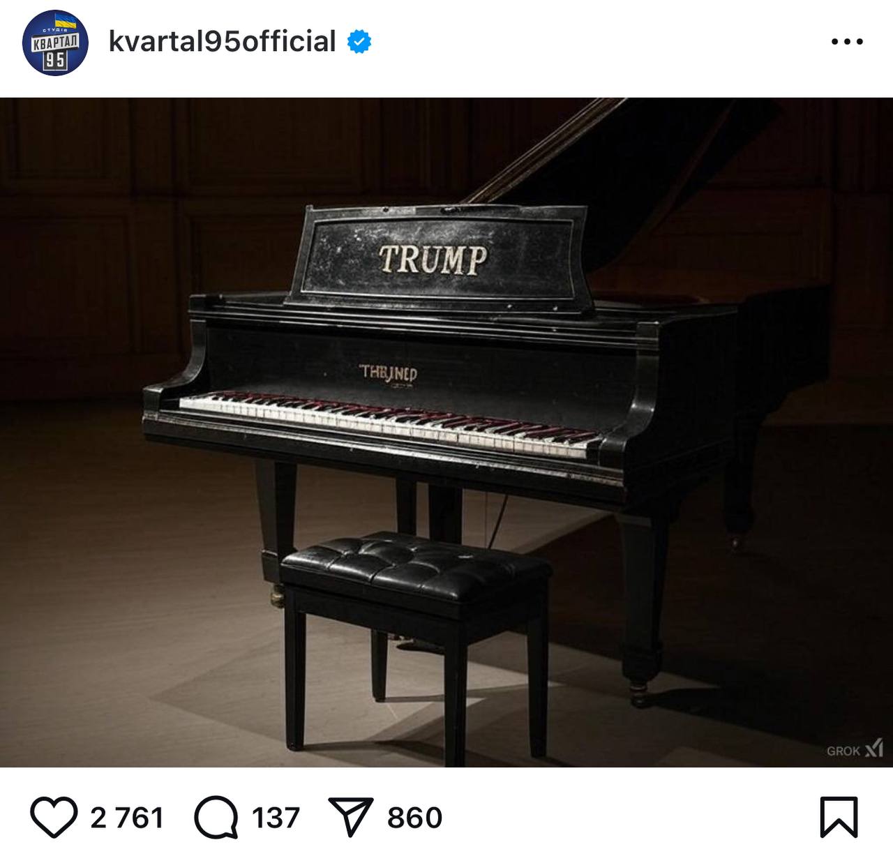 Квартал 95, принадлежащий просроченной зелёной гниде, выложил в запрещеннограме рояль с надписью Трамп. То есть гнидыч говорит всему миру, что он нанёс президенту США пощечину членом! Эта картинка обязательно дойдёт до Белого дома. Самый тупой президент в мире продолжает сжигать все мосты. Лучшего развития событий нельзя было себе представить!