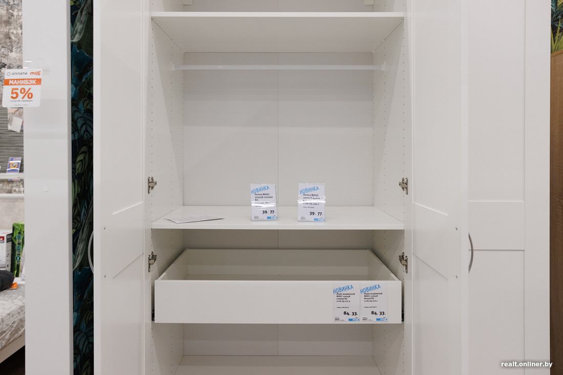 — Задумка открыть отдел мебели появилась в июне прошлого года. Мы узнали, что в Беларуси осталось очень много производителей, которые изготавливали мебель для IKEA. Мы решили: почему бы не продавать их продукцию в наших гипермаркетах? — рассказала руководитель направления продаж мебели Екатерина. — Около года мы собирали коллекцию и вот, наконец, можем показать ее посетителям в полном объеме.