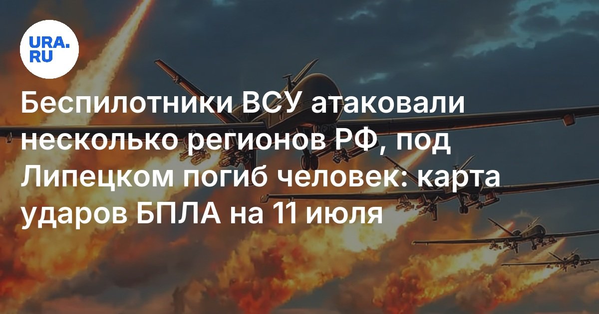 Украина в ночь на 11 июля атаковала несколько российских регионов 155 дронами. Так, в Липецкой области в результате падения беспилотника на территорию сельскохозяйственного предприятия погиб человек, еще один получил ранения. Об этом сообщил губернатор региона Игорь Артамонов.