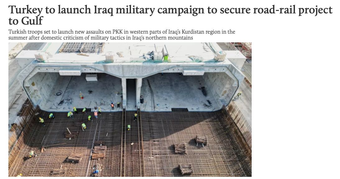 🇹🇷🇮🇶Турция начнет военную кампанию в Ираке для обеспечения безопасности дорожного и железнодорожного проекта в Персидском заливе