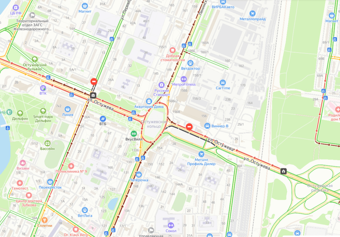 Вероятно, причина заторов кроется в перекрытых участках на улицах Остужева и Перевёрткина.