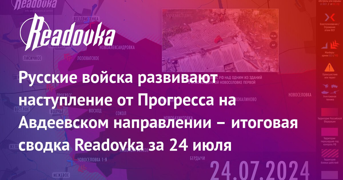 Русские войска развивают наступление от Прогресса на Авдеевском направлении – итоговая сводка Readovka за 24 июля