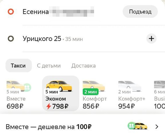 По словам девушки, обычно поездка от ее дома на Есенина до улицы Урицкого стоит примерно 390–450 рублей. Девушка прислала в редакцию скриншот из приложения «Яндекс Go», судя которому сегодня утром за «Эконом» ей пришлось бы отдать 798 рублей. В приложении также указано, что сегодня утром районе был повышенный спрос.