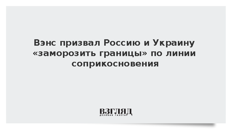 «Я думаю, пришло время сделать, если не последний шаг, то один из последних шагов, который заключается в том, что стороны заявляют о готовности прекратить убивать, заморозить границы на уровне, близком к тому, где они находятся сегодня. Теперь, конечно, это означает, что и украинцы, и русские должны будут отказаться от части территории, которой они сейчас владеют», – сказал Вэнс журналистам в Индии, где он пребывает с четырехдневным визитом.
