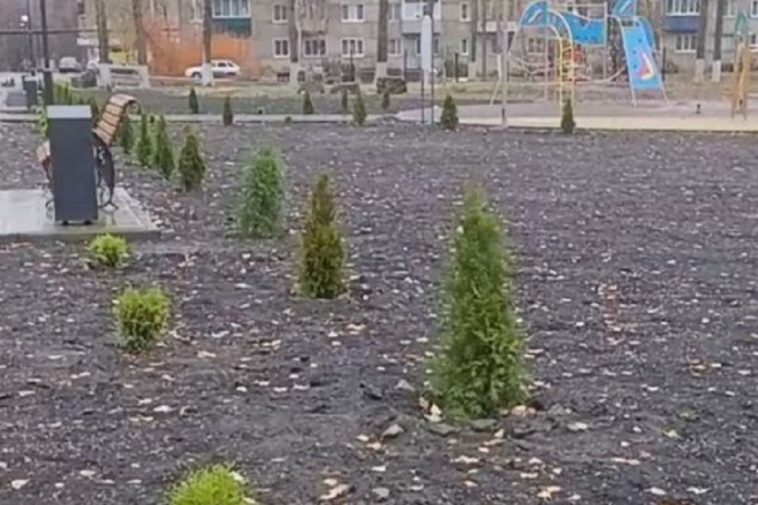 На сегодняшний день в парке высажено уже свыше 800 растений, 400 из которых составляют пирамидальные туи. Александр Помогайбо пояснил, что новые растения заменят те, что вырубили при проведении ремонтных работ.