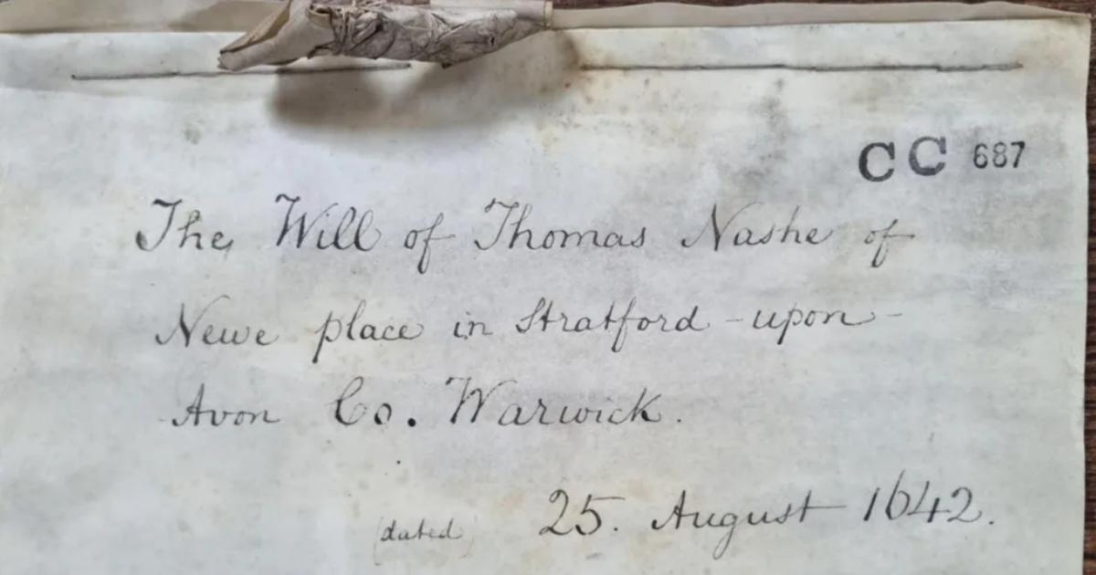 Le document a été écrit par Thomas Nash, époux d’Elizabeth Hall, petite-fille du dramaturge. Sur le papier, il avait légué la maison de New Place, située à Stratford-upon-Avon dans le Warwickshire, a son propre cousin Edward Nash. Shakespeare y a habité de 1597 jusqu’à sa mort, en 1616 et la demeure de trois étages comprend notamment dix cheminées et un terrain suffisamment grand pour y construire deux granges. Or, Thomas Nash n’avait pas le droit de laisser la propriété à son cousin puisque la maison appartenait déjà à Susanna, la fille aînée du poète et à la petite fille, Elizabeth.