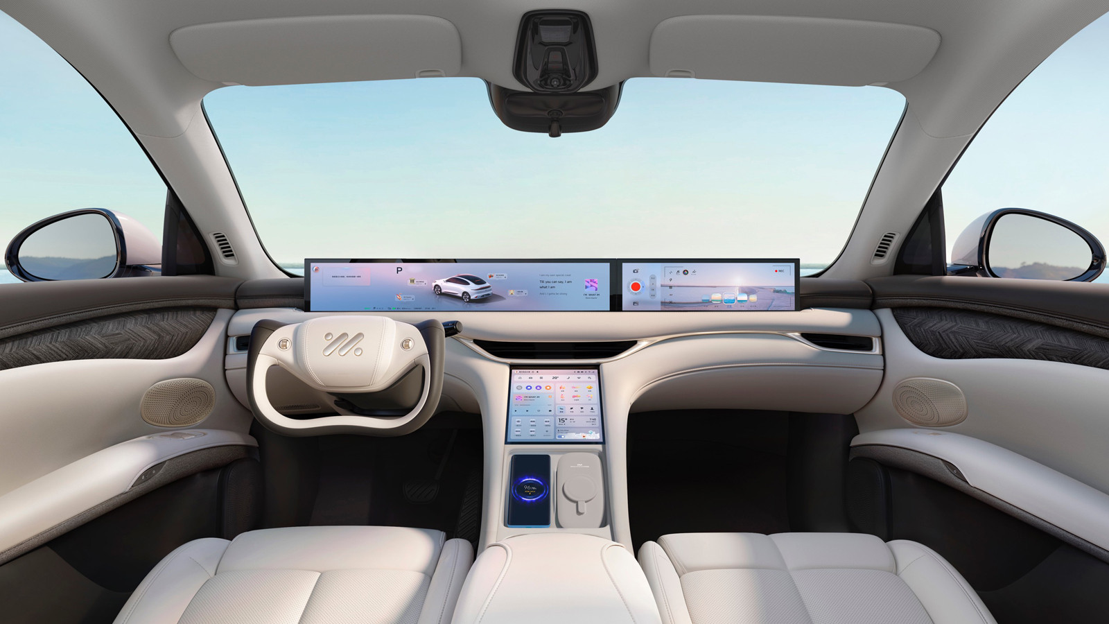 Четырёхдверка имеет силуэт фастбека, выдвижные дверные ручки, необычные легкосплавные колёсные диски и «утиный хвост» на корме. В салоне можно увидеть необычный руль, а также несколько дисплеев на передней панели и центральной консоли, исполняющих роль виртуальной приборки, тачскрина информационно-развлекательной системы и сенсорного экрана для переднего пассажира.