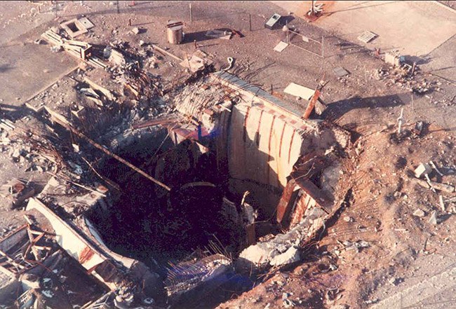 Осенью 1980 года произошел страшный инцидент на авиабазе Литл-Рок — там техник уронил насадку для торцевого гаечного ключа на ядерную ракету "Титан" с боеголовкой W53. Насадка отрикошетила и пробила топливный бак. Расчёт стартовой позиции был эвакуирован, прибывшая разведгруппа ужаснулась последствиям - но спастись не успела, произошёл взрыв 110 тонн топлива. Он выбил крышку шахты весом в 740 тонн и выбросил на 200 метров в небо и вторую ступень ракеты, и боеголовку "Марк" - которая при падении разрушилась. Результат - на фото в архивах иллюстрации.