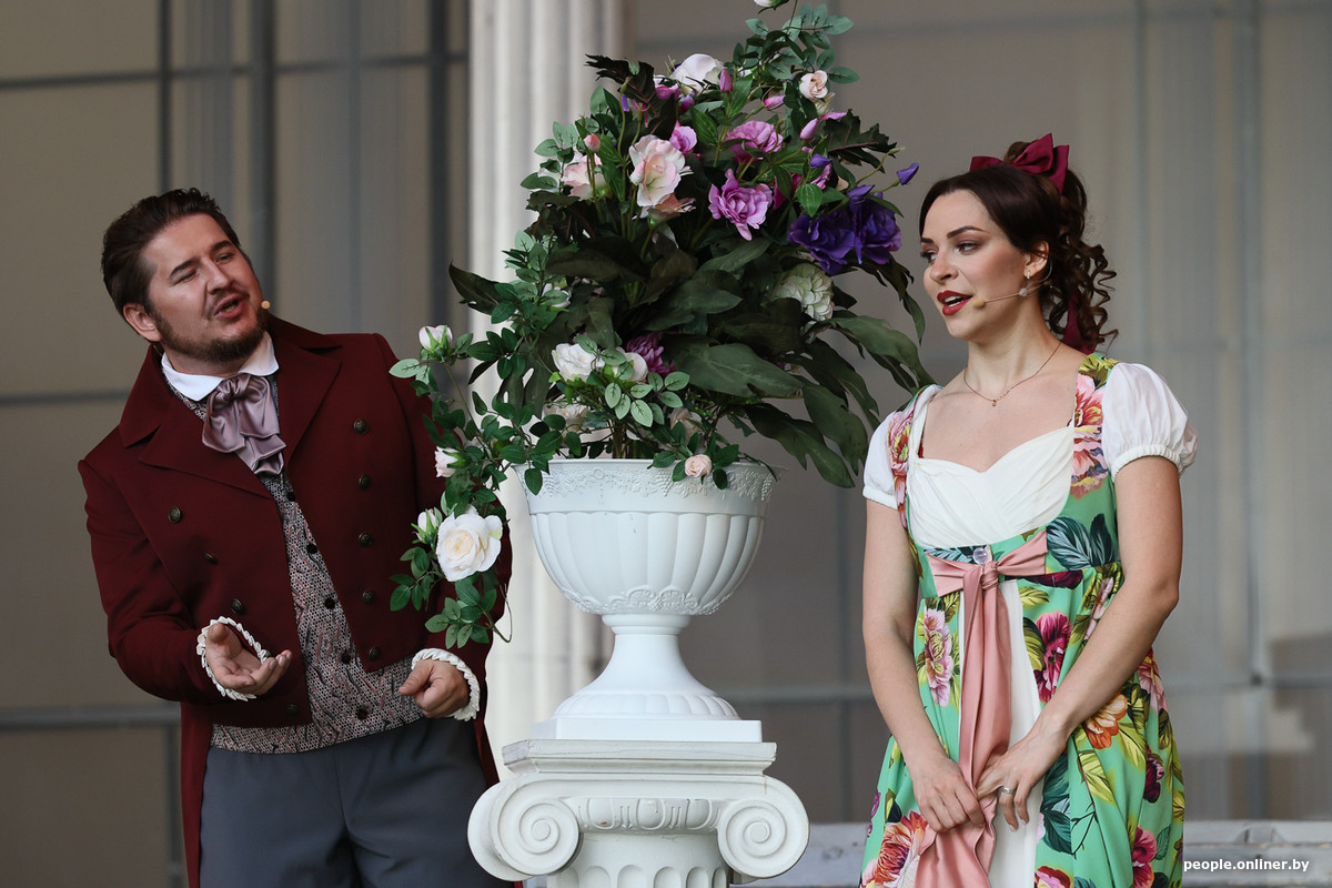 По словам организаторов, это 15-й по счету фестиваль — и к юбилейной программе они подготовили 13 мероприятий, среди которых концерты в театральном зале замка и Костеле Божьего Тела, балеты «Жар-птица» Игоря Стравинского и «Шехеразада» на музыку Николая Римского-Корсакова. Вчера зрителям представили премьеру этого сезона — оперу Петра Чайковского «Евгений Онегин» в постановке режиссера Анны Моторной на главной площадке замка в Центральном дворе.