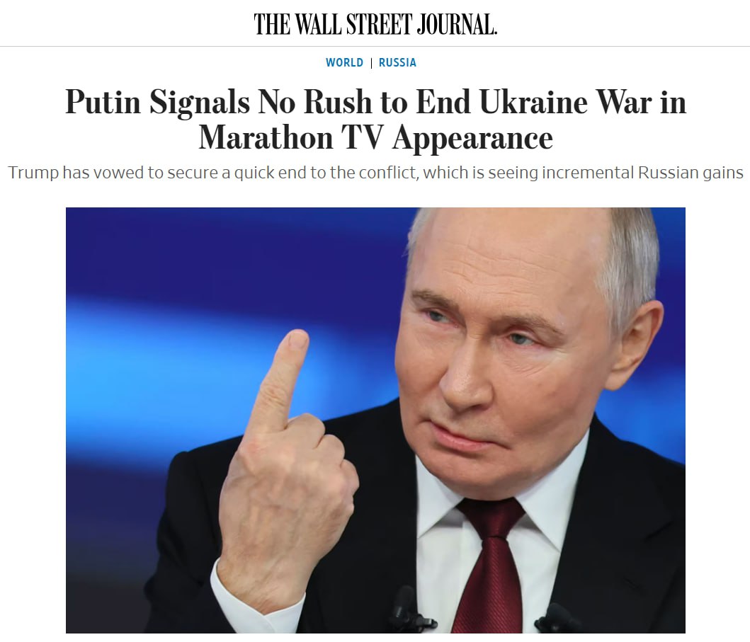 π·πΊ πΊπΈ ΠΠ»Π°Π΄ΠΈΠΌΠΈΡ ΠΡΡΠΈΠ½ ΡΠΈΠ³Π½Π°Π»ΠΈΠ·ΠΈΡΡΠ΅Ρ, ΡΡΠΎ Π½Π΅ ΡΠΎΡΠΎΠΏΠΈΡΡΡ Π·Π°ΠΊΠ°Π½ΡΠΈΠ²Π°ΡΡ ΠΊΠΎΠ½ΡΠ»ΠΈΠΊΡ Π½Π° Π£ΠΊΡΠ°ΠΈΠ½Π΅ β WSJ