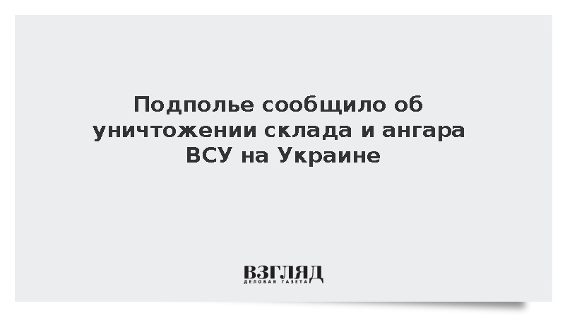 Подполье сообщило об уничтожении склада и ангара ВСУ на Украине