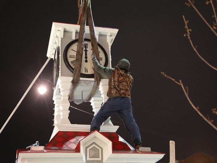 На следующей неделе планируется провести завершающие работы – монтаж навесных декоративных элементов, шпиля и настроить часовой механизм.