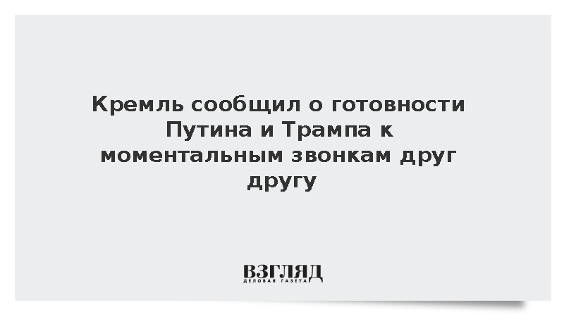 Песков сообщил, что между Путиным и Трампом существует договоренность о возможности моментальных звонков друг другу при необходимости, передает РИА «Новости».