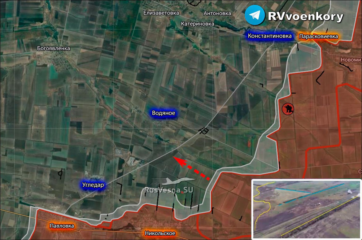 📝 «На днях стало известно, что российские бойцы смогли прорваться на 5 км к важному логистическому маршруту врага - трассе 00532 Константиновка-Угледар южнее Водяного. Это главный путь снабжения угледарской группировки ВСУ», - сообщают «Военкоры Русской Весны»