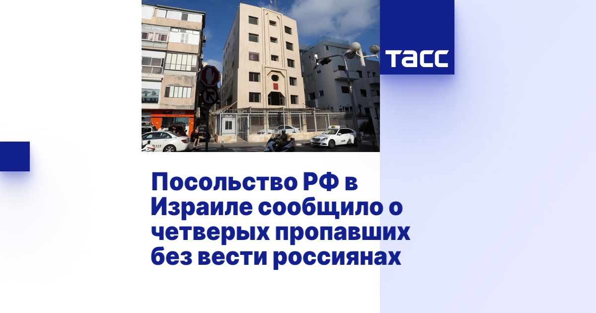 ТЕЛЬ-АВИВ, 9 октября. /ТАСС/. По меньшей мере четыре гражданина РФ официально числятся в Израиле пропавшими без вести после атаки на страну со стороны палестинских радикалов из ХАМАС, подтвержденных данных о погибших россиянах по состоянию на 16:00 мск нет. Об этом сообщило посольство РФ в Израиле.