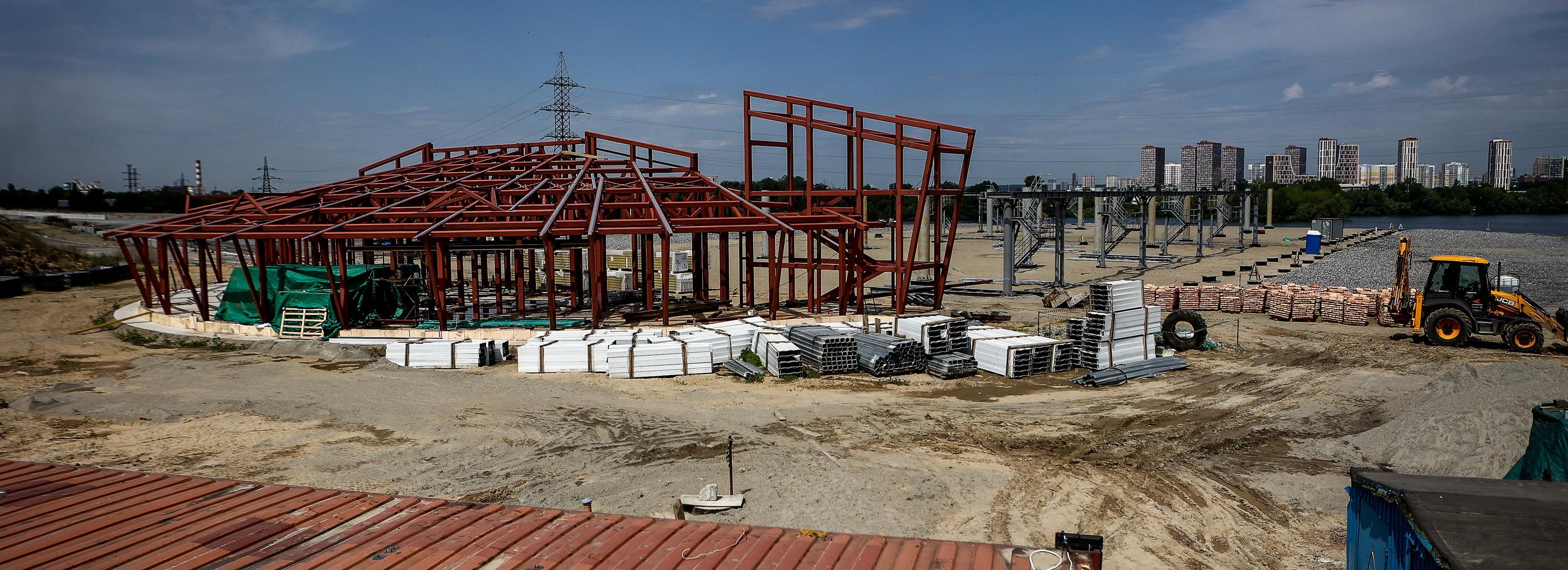 В самой широкой точке площадки смонтировали опоры для установки оборудования. Там разместят платёжные терминалы — по 11 в каждом направлении. Весь комплекс состоит из здания центра управления дорожным движением, навеса и перехода над рабочей зоной пункта оплаты. Строительство административно-диспетчерского корпуса находится на этапе каркаса.