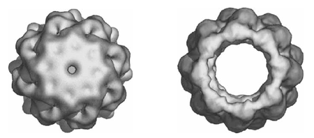 Видео. Механизм открывания и закрывания полости шаперонина TRiC/CCT быка. Видео получено в результате компьютерного моделирования колебательных движений моделей открытого и закрытого состояний шаперонина. Выявленные в результате такого анализа «скручивающие» движения позволили предположить, что «заслонка» шаперонина работает аналогично шторке диафрагмы фотообъектива.