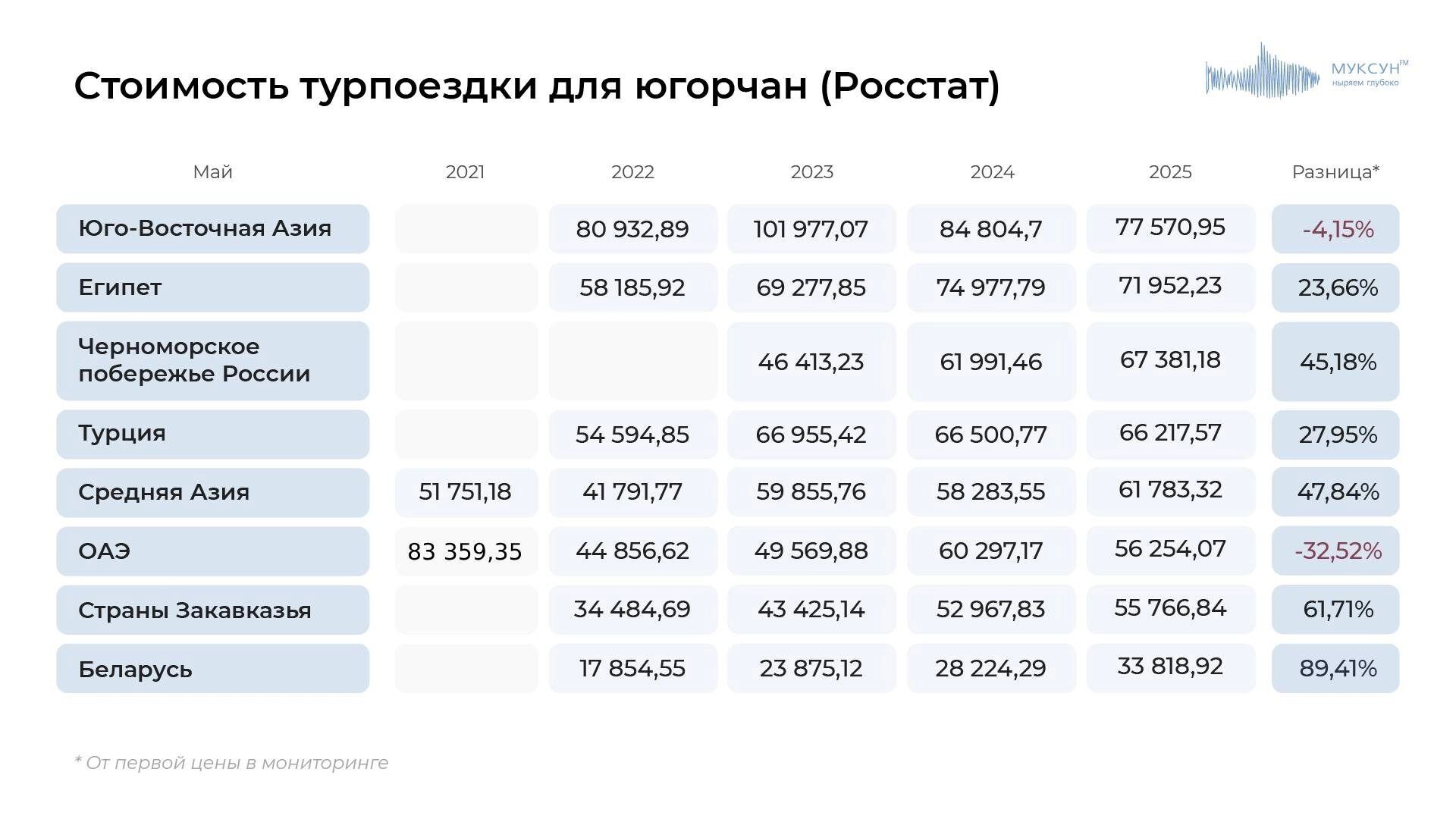 Цены на поездки в отпуск внимательно мониторит Росстат — отдельно для каждого региона. Есть у статистиков выкладка и для югорчан.