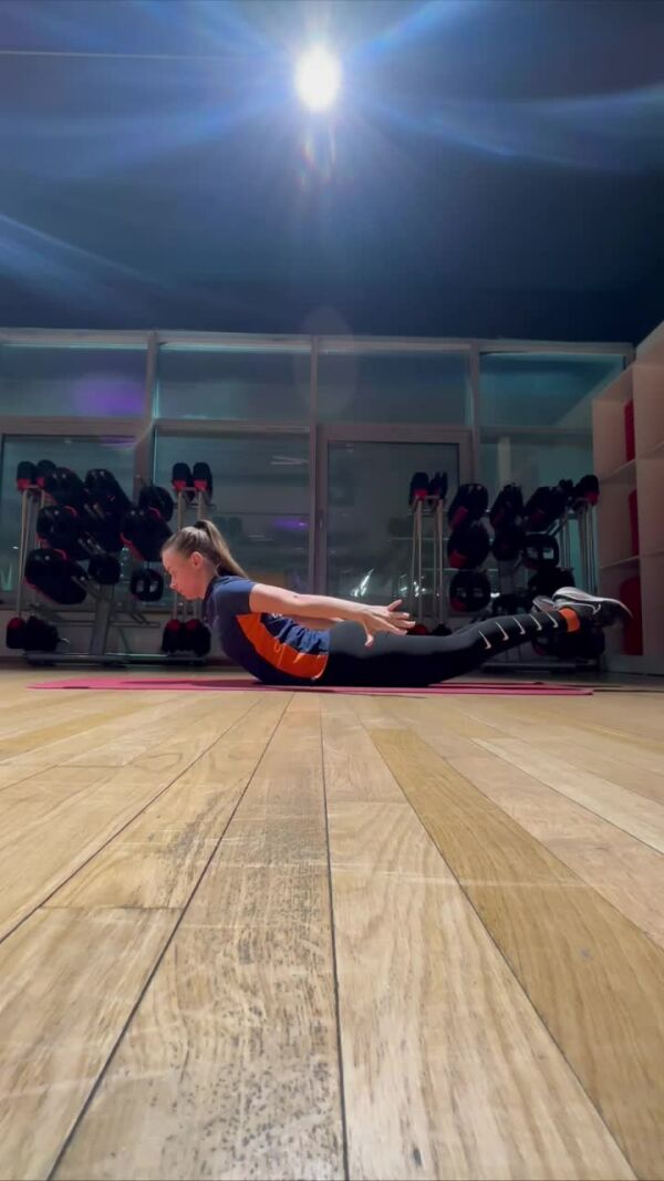 Медленно, позвонок за позвонком, приподнимаем грудной отдел, цепляемся за пол нижними и создаем вытяжение по позвоночнику и до затылка, вытянув руки в длину перед собой, пальцы рук раскрыты и натянуты. Поднимаем бедра над полом и удерживаем это положение. Дыхание глубокое и свободное, взгляд устремлен за руками вперед.
