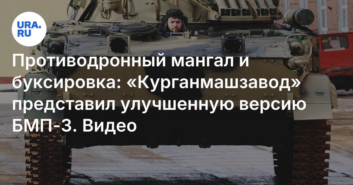 «АО „Курганмашзавод“ представил на военно-техническом форуме „Армия-2024“ боевую машину пехоты БМП-3 с улучшенными характеристиками по мобильности и защищенности. Бронемашина имеет комплект защиты верхней полусферы, состоящий из трубчатого каркаса, сетчатого металлического экрана и сетки из текстильного шнура (также его называют противодронный мангал)», — сообщили URA.RU в холдинге.