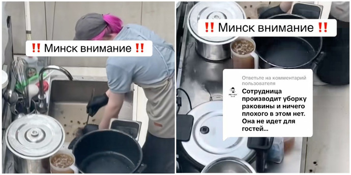 На днях в TikTok завирусился ролик, снятый в одном из минских заведений. В кадре запечатлена сотрудница, вылавливающая из раковины шарики тапиоки. Затем девушка перекладывает все в емкость. В комментариях тут же разгорелась полемика: пойдет ли «выловленное» в напитки или это обычная уборка?