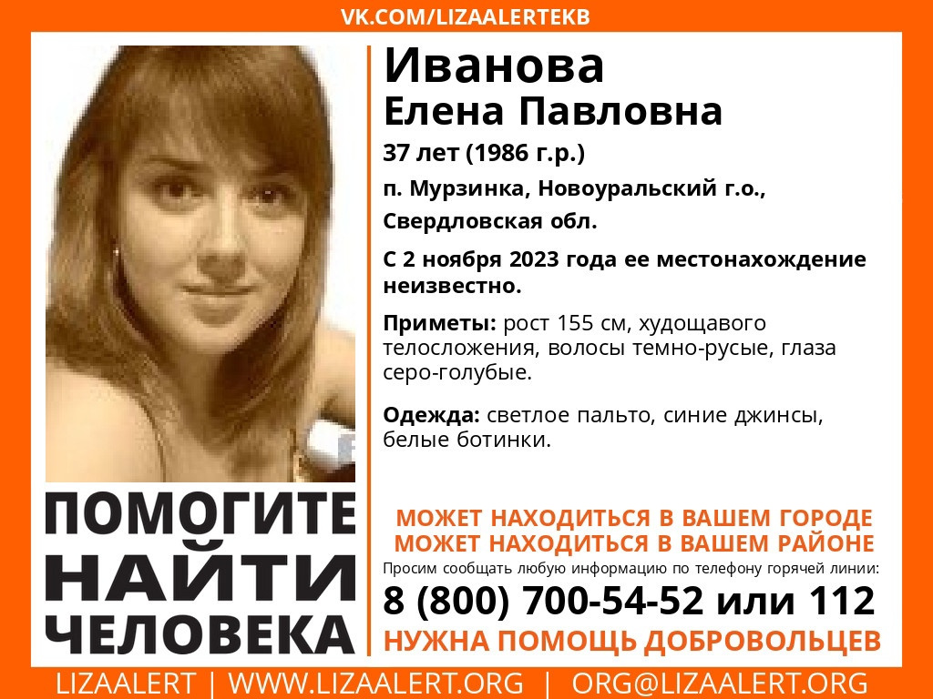 Елену ищут по всей Свердловской области. 2 ноября она была одета в светлое пальто, синие джинсы и белые ботинки. Если вы что-то знаете о ней, то позвоните по номеру 8 (800) 700–54–52 или 112.
